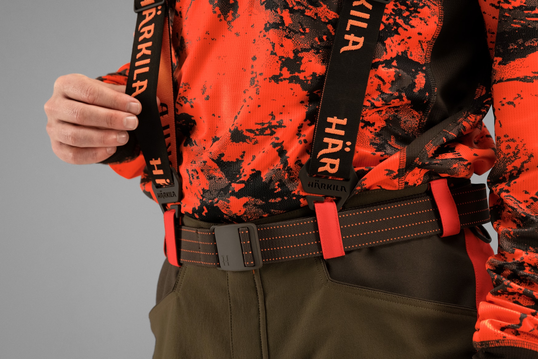 Szelki Wildboar Pro są wykonane z 47% poliestru, 15% nylonu i 38% spandexu, dzięki czemu są wytrzymałe, elastyczne i przyjemne w noszeniu. Posiadają klamry, które przypinają się do szlufki dowolnych spodni, dzięki czemu nie potrzebują specjalnych guzików pod szelki.