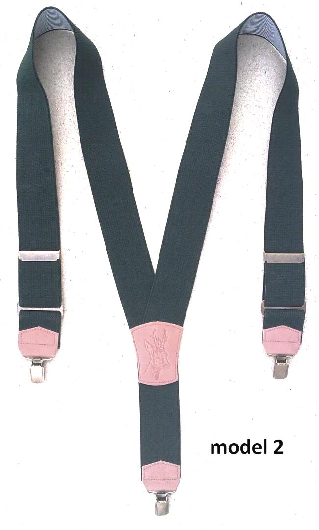Są w kolorze zielonym, w kształcie litery Y, na łączeniu obszyte skórą z wytłoczonym motywem myśliwskim.