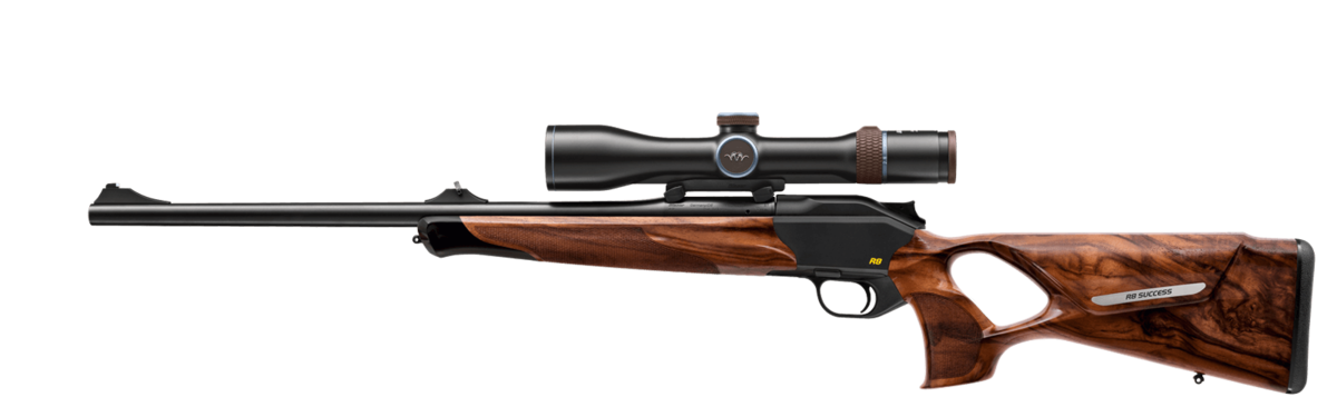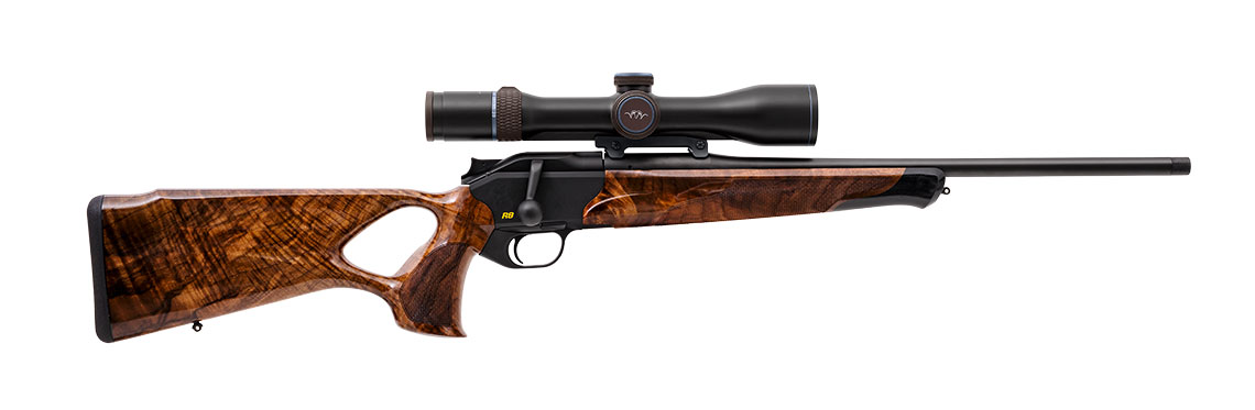 Kolba Blaser z otworem na kciuk zapewnia dokładne strzelanie w każdej sytuacji. Dzięki R8 Success, miłośnicy szlachetnego drewna również skorzystają z tego pomysłowego projektu kolby. Dwuczęściowa, ergonomiczna kolba z otworami na kciuki z drewna orzechowego Czubek z hebanu - część policzkowa z tabliczką znamionową ze stali nierdzewnej Gumowa podkładka odrzutu Odbiornik w matowej czerni ze złotym napisem R8 Drewno klasy 4 i 7