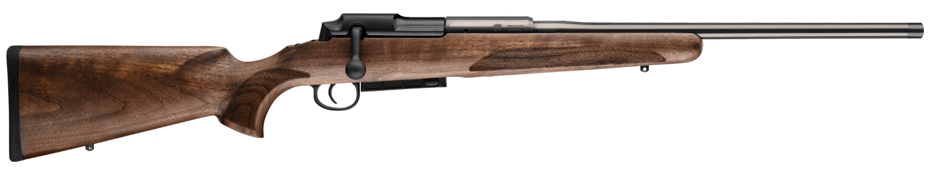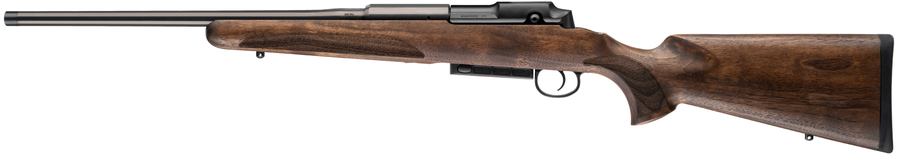 Błyskawicznie szybki klasyk. Mauser 25 Pure to nowy i błyskawicznie szybki repetier z zamkiem dwutaktowym, który prezentuje się jako prawdziwy klasyk, z osadą wykonaną z drewna orzechowego o prostym grzebiecie i stromym chwycie pistoletowym.