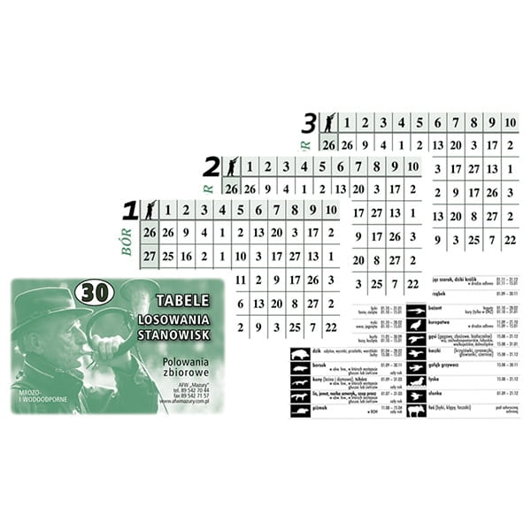 Wykonane z materiału syntetycznego mrozo- i wodoodpornego, lakierowane UV. Wymiary 110 x 70 mm.