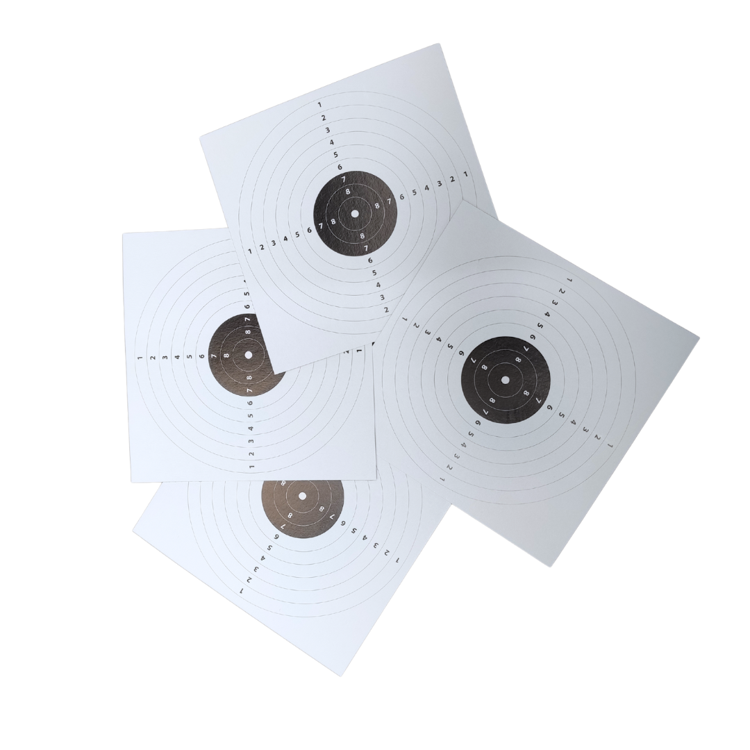 Na każdej tarczy znajduje się 10 okręgów, a najwyższe punkty zdobywa się za trafienie środkowego punktu, co daje maksymalną ilość punktów. Dzięki wyraźnym liniom oraz dobrze widocznej strukturze, tarcze są idealne do rywalizacji strzeleckich i treningów indywidualnych.