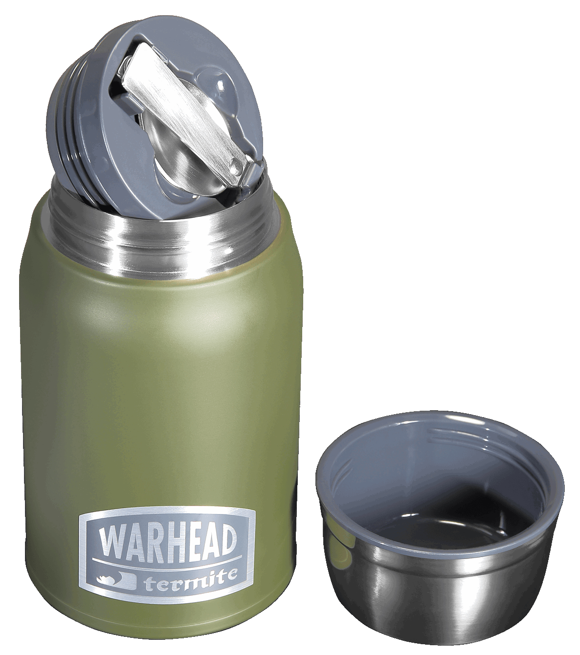 Nasze termosy TERMITE WARHEAD® wykonane są z najwyższej jakości stali nierdzewnej, a ich wnętrze nie musi być pokryte żadną dodatkową powłoką. Termos wykonano bez użycia szkodliwych dla zdrowia związków, takich jak Bisfenol (BPA) i ftalany. Wersja ta wyposażona została w dodatkową składaną łyżkę.