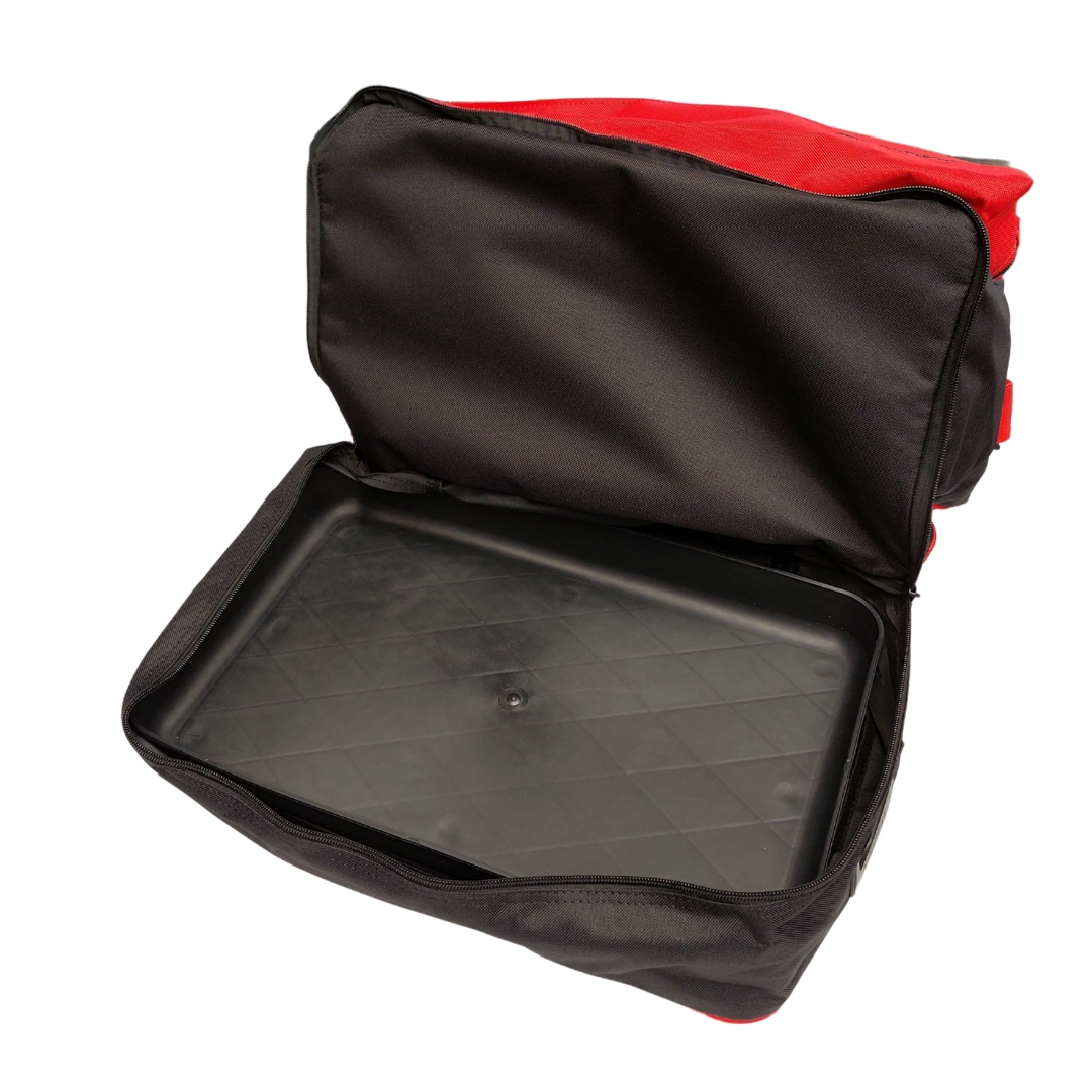 Dolna kieszeń kryje w sobie solidny plastikowy pojemnik – idealny do przechowywania amunicji w sposób bezpieczny i uporządkowany. Torba została wyposażona w wygodny uchwyt do przenoszenia oraz regulowany pas na ramię, który zwiększa komfort noszenia, nawet przy większym obciążeniu.