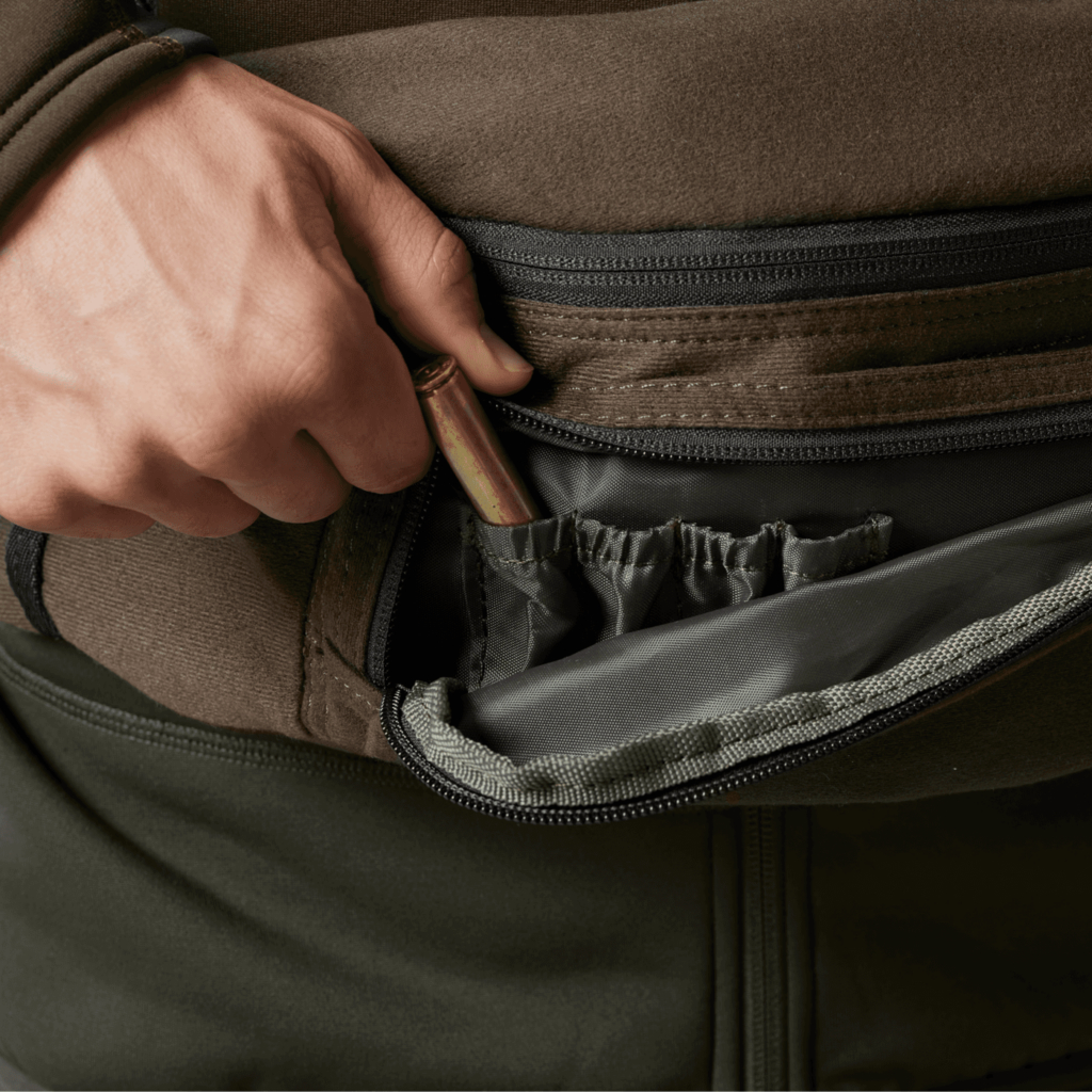 Nerka Deer Stalker jest wykonana z bardzo cichego trykotu, zawiera również wiele różnych przegródek, co ułatwia uporządkowanie rzeczy i utrzymanie ich w gotowości do użycia, w przeciwieństwie do plecaka, w który trzeba się zagłębić, aby znaleźć to, czego potrzebujesz. Nerka posiada z każdej strony pętle systemu MOLLE do zaczepienia potrzebnego sprzętu, takiego jak dalmierz, apteczka lub inne przedmioty. Z tyłu nerka ma podszewkę z siateczki, która odprowadza wilgoć i zapewnia suchość w miejscu, w którym spoczywa na biodrze. Torba posiada regulowany pasek z zatrzaskiem, co ułatwia zakładanie i zdejmowanie. Można ją nosić w pasie/na biodrach lub na klatce piersiowej.