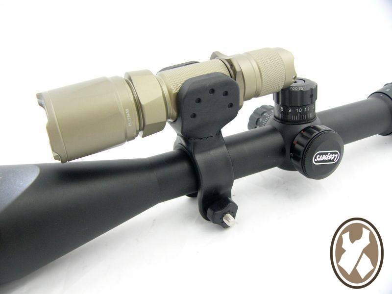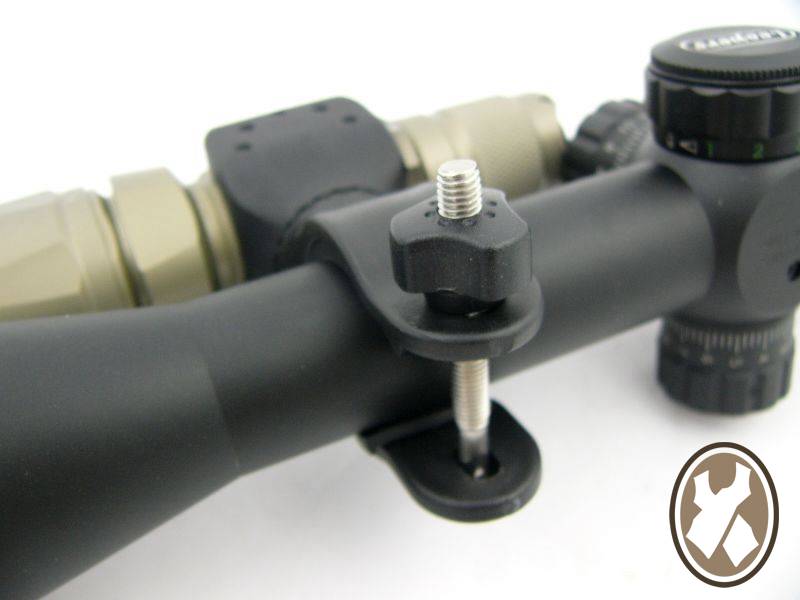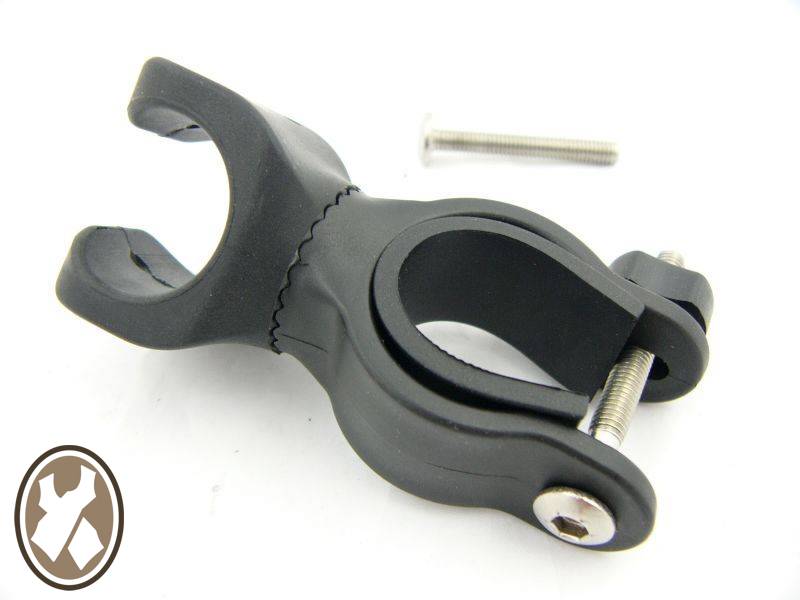 Montaż wykonany z tworzywa ABS z gumowymi elementami dzięki czemu nie porysujesz łączonych nim elementów. Służy do zamontowania na lunecie bądź rowerze latarki lub laseru o tubusie 1 cal. Po zamocowaniu obracany o 360 stopni. W komplecie zapasowa śrubka.