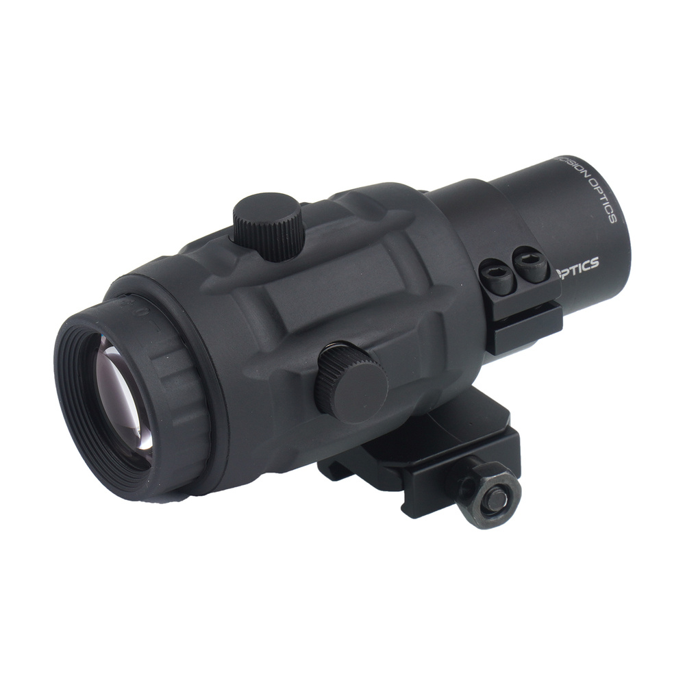 Dołączony do zestawu montaż QD pozwala na szybki montaż powiększalnika bezpośrednio na szynie Picantinny. System Flip pozwala na szybkie odsunięcie powiększalnika na bok i celowanie bez dodatkowego przybliżenia.