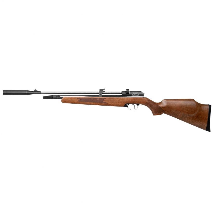 Diana Trailscout to karabinek na CO2 bez odrzutu, idealny na początek przygody ze strzelectwem pneumatycznym. Osada wykonana z olejowanego drewna bukowego ma eleganckie wykończenie, a kratkowania na chwycie pistoletowym i przedniej części łoża poprawiają chwyt. Smukła konstrukcja (szerokość 38 mm) i lekkość (2,34 kg) sprawiają, że karabinek jest wygodny dla dzieci i kobiet. Kolba Monte Carlo z wysoką baką policzkową umożliwia komfortowe korzystanie z różnych celowników optycznych oraz wygodny skład dla osób prawo- i leworęcznych. Gumowa stopka na końcu kolby zapewnia stabilne oparcie karabinka na ramieniu.
