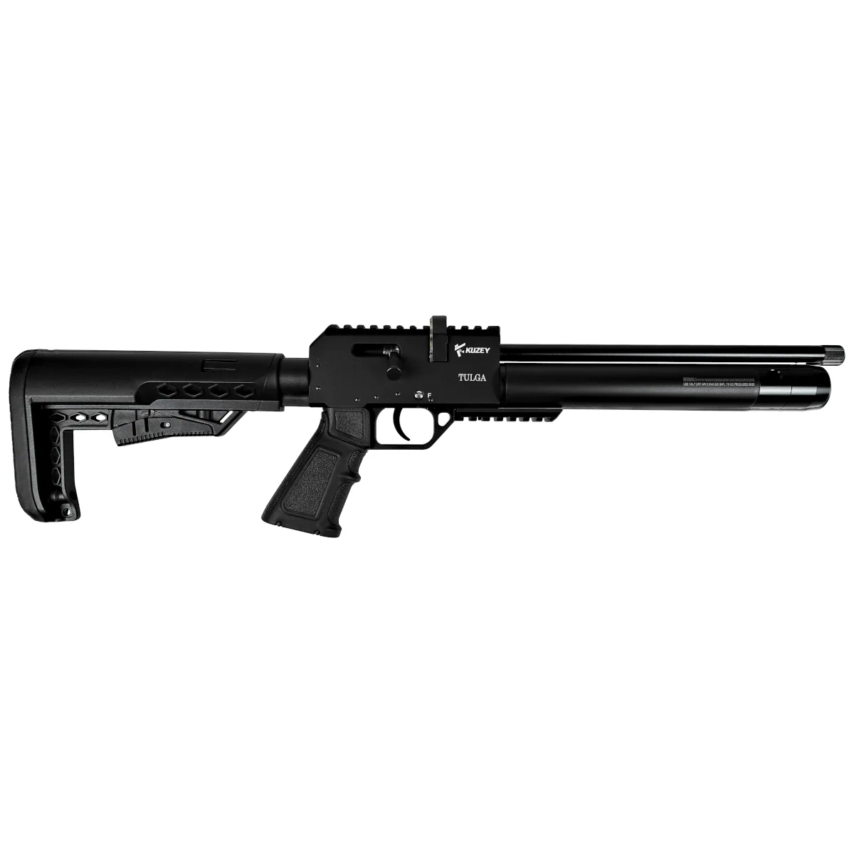 Kuzey Tulga Compact to nowoczesna wiatrówka typu PCP w taktycznej osadzie z teleskopową kolbą. Dzięki kompaktowym wymiarom, lekkiej konstrukcji (1,8 kg) i solidnym parametrom strzeleckim, sprawdzi się zarówno do rekreacyjnego strzelania, jak i treningu celności.