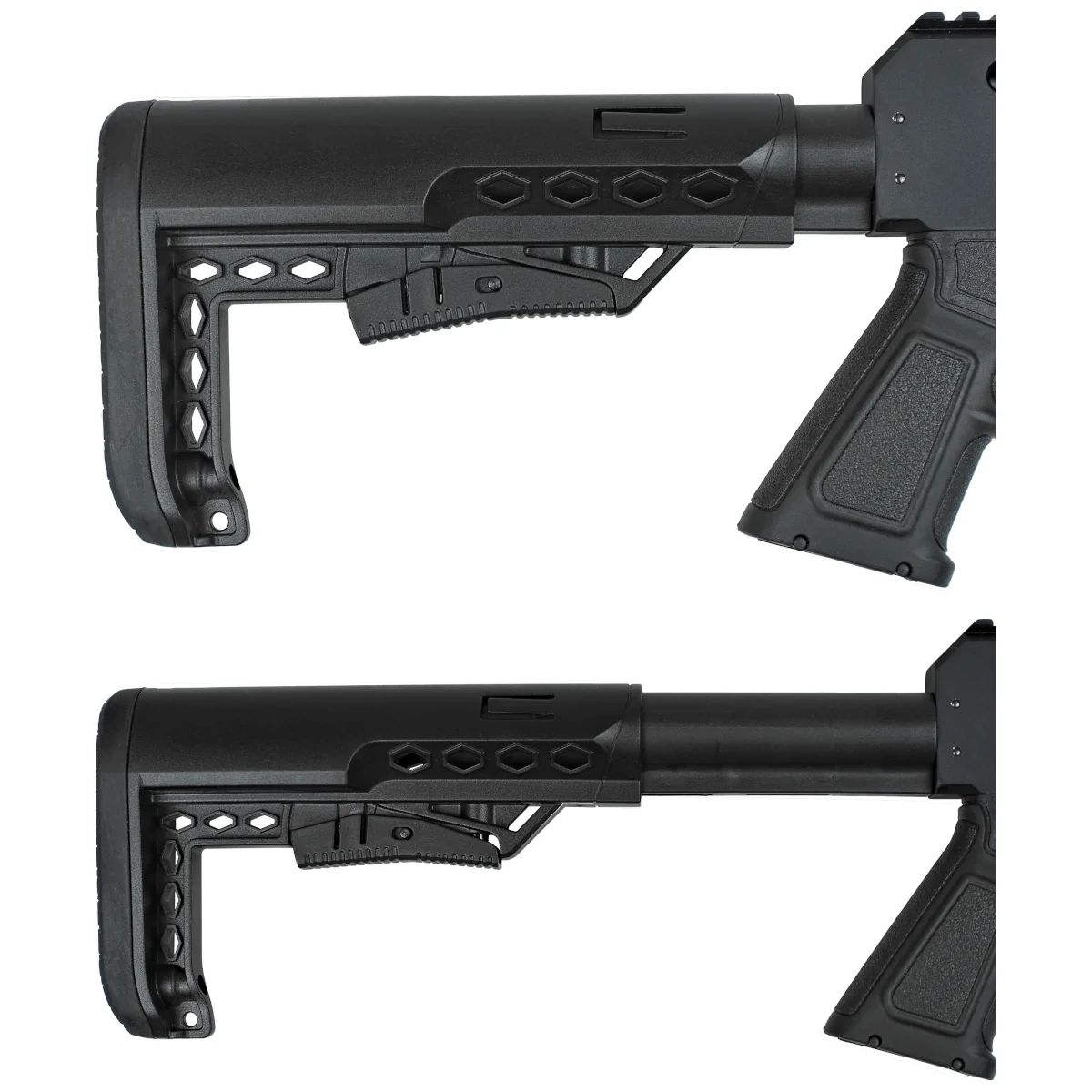 Taktyczna osada AR-15 – gumowany chwyt pistoletowy, teleskopowa kolba z regulacją długości i gumową stopką dla większego komfortu.