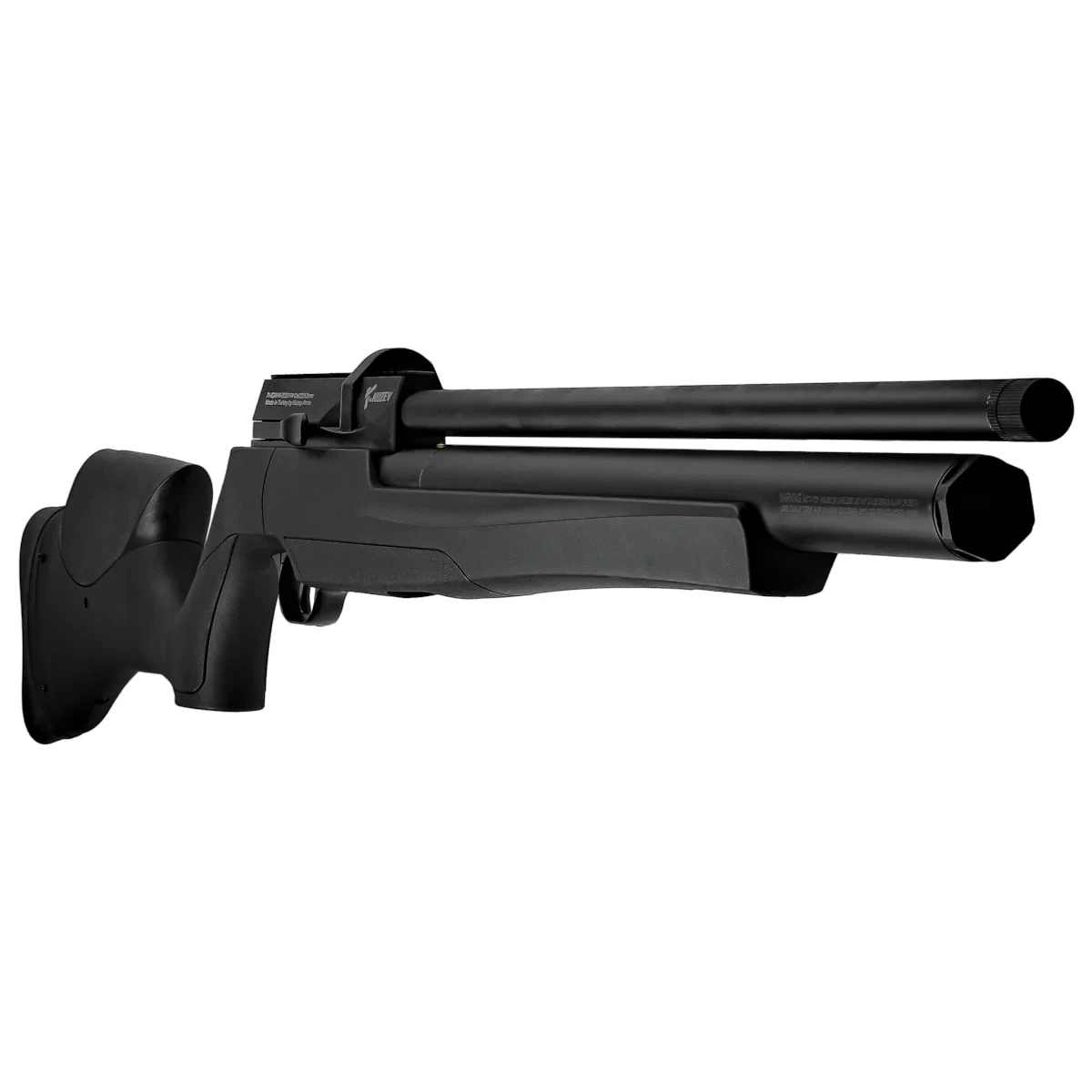 Model wyposażono w 310-cc stalowy zbiornik powietrza z manometrem, co pozwala na dłuższe strzelanie bez konieczności częstego doładowywania. Pokrętło regulacji energii umożliwia idealne dobranie mocy do dystansu i rodzaju tarczy.