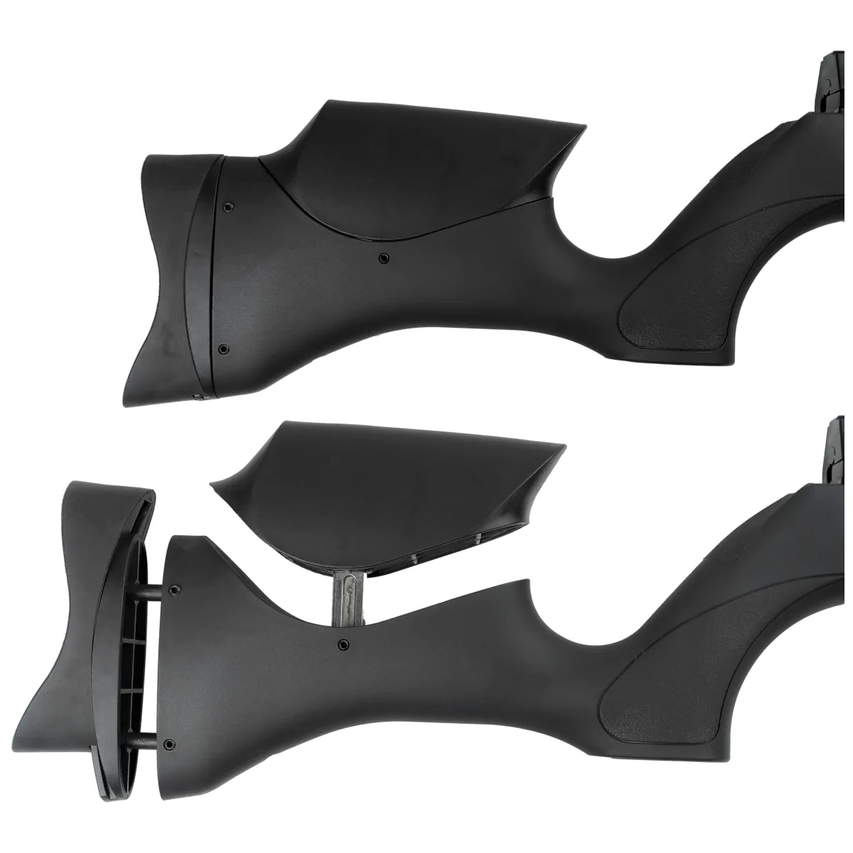 Osada z trwałego polimeru zachowuje sztywność i odporność na warunki atmosferyczne, a regulowana baka policzkowa typu Monte Carlo zapewnia wygodne złożenie do strzału. Gumowa stopka i przemyślane żłobienia gwarantują pewny chwyt, nawet podczas dłuższych sesji treningowych.