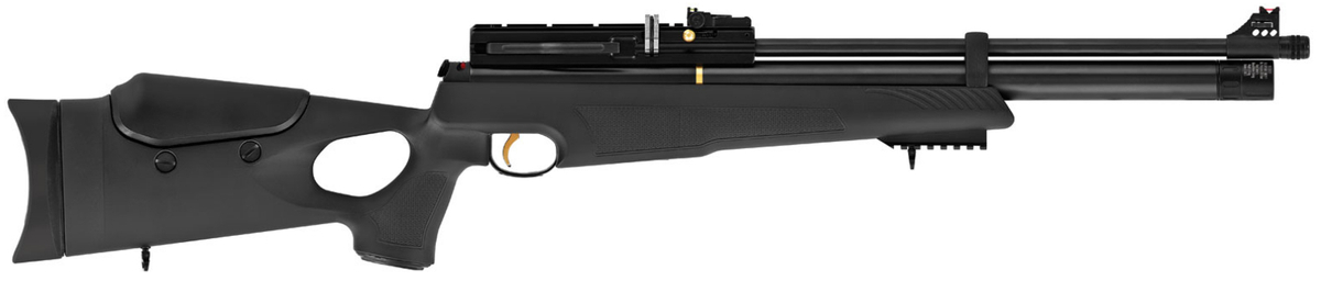 Karabinek Hatsan AT44-10 mocna, wielostrzałowa wiatrówka 10 lub 9-strzałowa (w zależności od kalibru) typu PCP (Pre-Charged Pneumatic) o dużym zasięgu, wysokiej jakości wykonania. Polimerowa kolba TH (ThumbHole) z otworem na kciuk i regulacją wysokości baki. Model polecamy miłośnikom dobrej zabawy oraz tuningu.