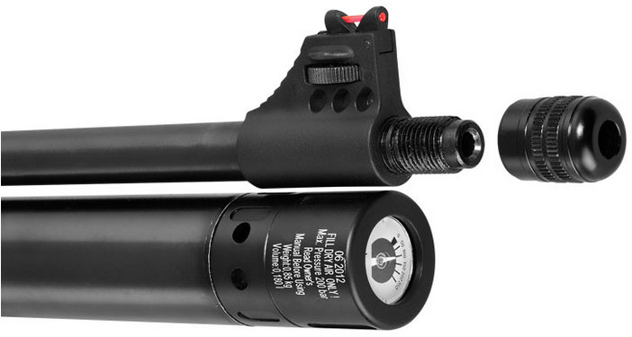 Kartusz - karabin wyposażono w wymienny zbiornik sprężonego powietrza o pojemności 180 cc znajdujący się pod lufą. Wbudowany manometr pozwala na bieżąco kontrolować ciśnienie znajdujące się w zbiorniku, a tym samym stopnień jego naładowania. Obrotowa osłona chroni wlot powietrza do kartusza przed uszkodzeniem.