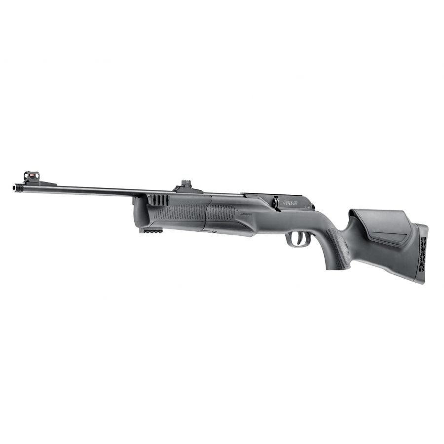 Umarex 850 M2 4,5 mm to zmodernizowana wersja popularnego modelu 850, wyposażona w kolbę z regulowaną baką policzkową, pojemny 8-strzałowy magazynek, lufę z gwintem zewnętrznym oraz światłowodowe przyrządy celownicze.
