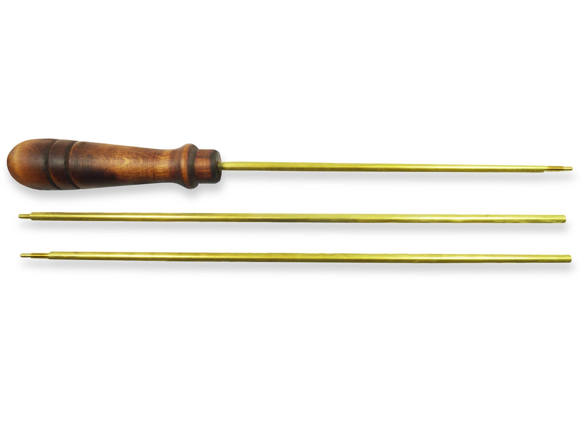 Wygodna drewniana rączka umożliwia pewny chwyt, a obrotowy składany z trzech części trzpień pozwala na dokładne oczyszczenie przewodu lufowego bez ryzyka uszkodzenia gwintu.
