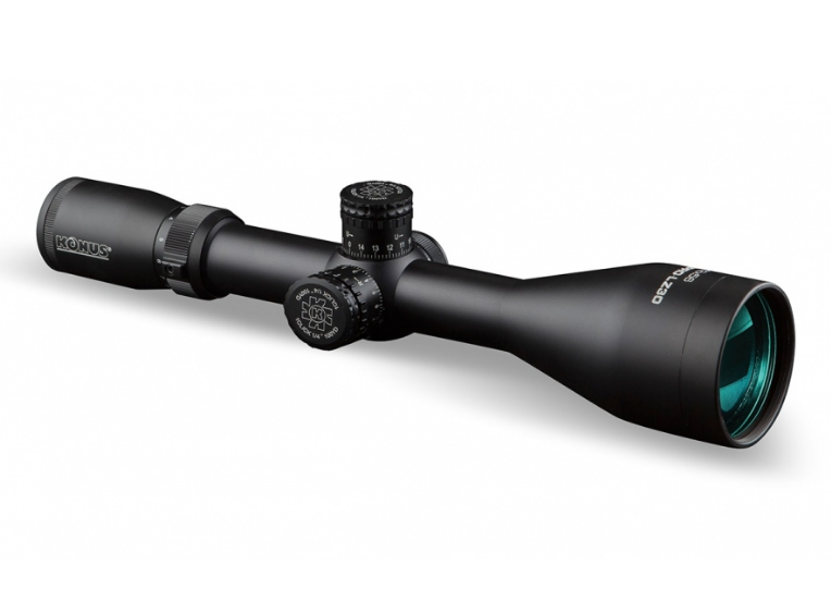 Konus Pro LZ-30 3-12x56 to luneta myśliwska o szerokim polu widzenia, z podświetlanym dwukolorowym krzyżem oraz blokowanymi bębnami balistycznymi z szybkim resetowaniem bębnów.Luneta ma jednoczęściowy, aluminiowy tubus o średnicy 30 mm, wypełniony suchym azotem, co zapobiega parowaniu i gwarantuje prawidłowe działanie w niskich temperaturach.Optyka została pokryta wielowarstowymi powłokami antyrefleksyjnymi, które pozwoliły osiągnąć wysoki poziom transmisji światła oraz i generują obraz o dużym kontraście i klarowności nawet w niesprzyjających warunkach oświetleniowych. Siatka celownicza 30/30 w drugim planie została wytrawiona na powierzchni soczewki zwiększając tym samym jej odporność na odrzut broni.Pływający krzyż jest podświetlany, w zależności od warunków możemy wybrać kolor czerwony do zastosowań dziennych oraz niebieski, mniej męczący oczy podczas strzelania przy szczątkowym świetle.Moletowane wieżyczki balistyczne mają podwójną blokadę oraz funkcję szybkiego resetowania nastawy bębnów. Jeden klik odpowiada 7,25 mm/100 m, zakres regulacji na 100 to 152 cm. Luneta wyróżnia się szerokim polem widzenia, około 20% większym niż w innych porównywalnych modelach dostępnych na rynku.