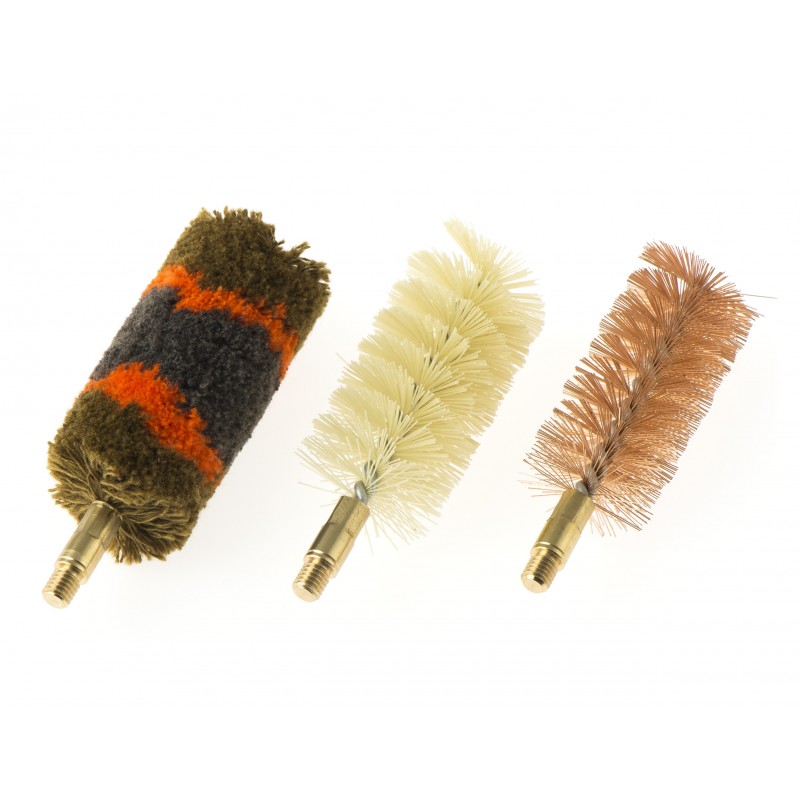 Zestaw trzech szczotek do czyszczenia strzelby kaliber 12.